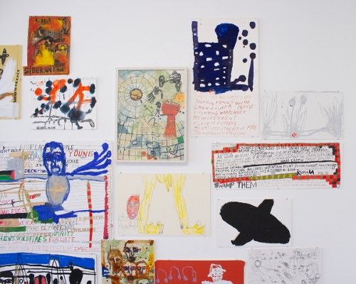 Bridget Currie, Each surface touched [work in progress], 2026. Mulberry and rag papers eaten by snails, glue, board, pearlescent ink. Photo: Sam Roberts.