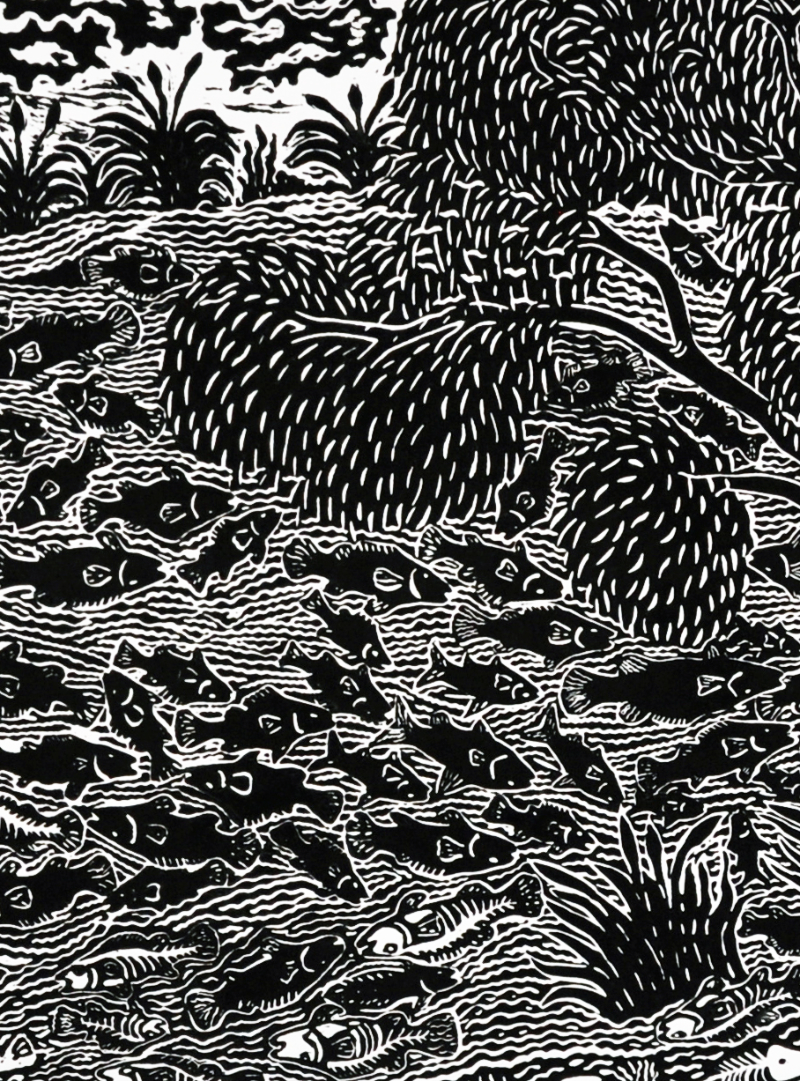 Jonathan Jones has chosen to speak of his Elder, Uncle Stan Grant Snr in a piece that is the heartbeat of all that trace can mean. Jade Turner honours her Mum, gone from this physical realm but still guiding her kin. Jacinta Koolmatrie looks at the legacy of the Tarnanthi Festival of Contemporary Aboriginal and Torres Strait Islander Art and activism around Water, while Dominic Guerrera asks what trace gatherings such as Tarnanthi can leave on Country and community. Madison Kelly takes us down rivers, into explorations of waterways, of artmaking as wayfinding and exchange. Jack Wilkie-Jans skilfully illuminates the brilliance and leadership of curator and artist Teho Ropeyarn. For me, it was most important to write about Uncle Badger Bates, living legend, guiding light, whose kindness and care has helped me to truly know who I am and what my purpose is as a Barkandji wiimpatja. A detail of his linocut Menindee Lakes Fish Kill 2018-2019 (2023) illustrates this editorial, echoing the importance of utilising our platforms to empower community and Country.