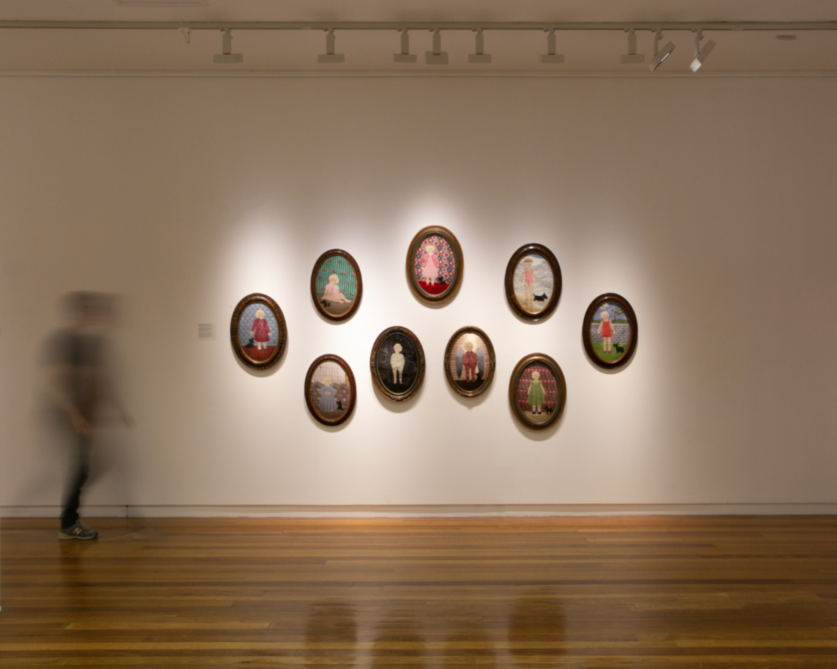 Upon entering the exhibition at the Wagga Wagga Art Gallery, all seems cosy, familiar to those of us who have grown up in rural and regional areas. Quilts, embroidery, soft pinks, mint greens. It’s charming. But disarming. And while it tells the story of a small girl, it’s an adults-only space.