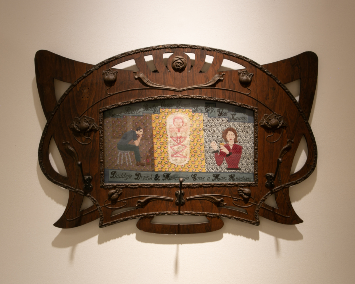 Coughlan not only explores her own rage through these works, but the anger of her mother, which was often violently directed towards her children. The dream of being a wealthy farmer’s wife had failed her. The farm’s needs always came first. So there was the church. And there was alcohol. It was an unhappy mix.