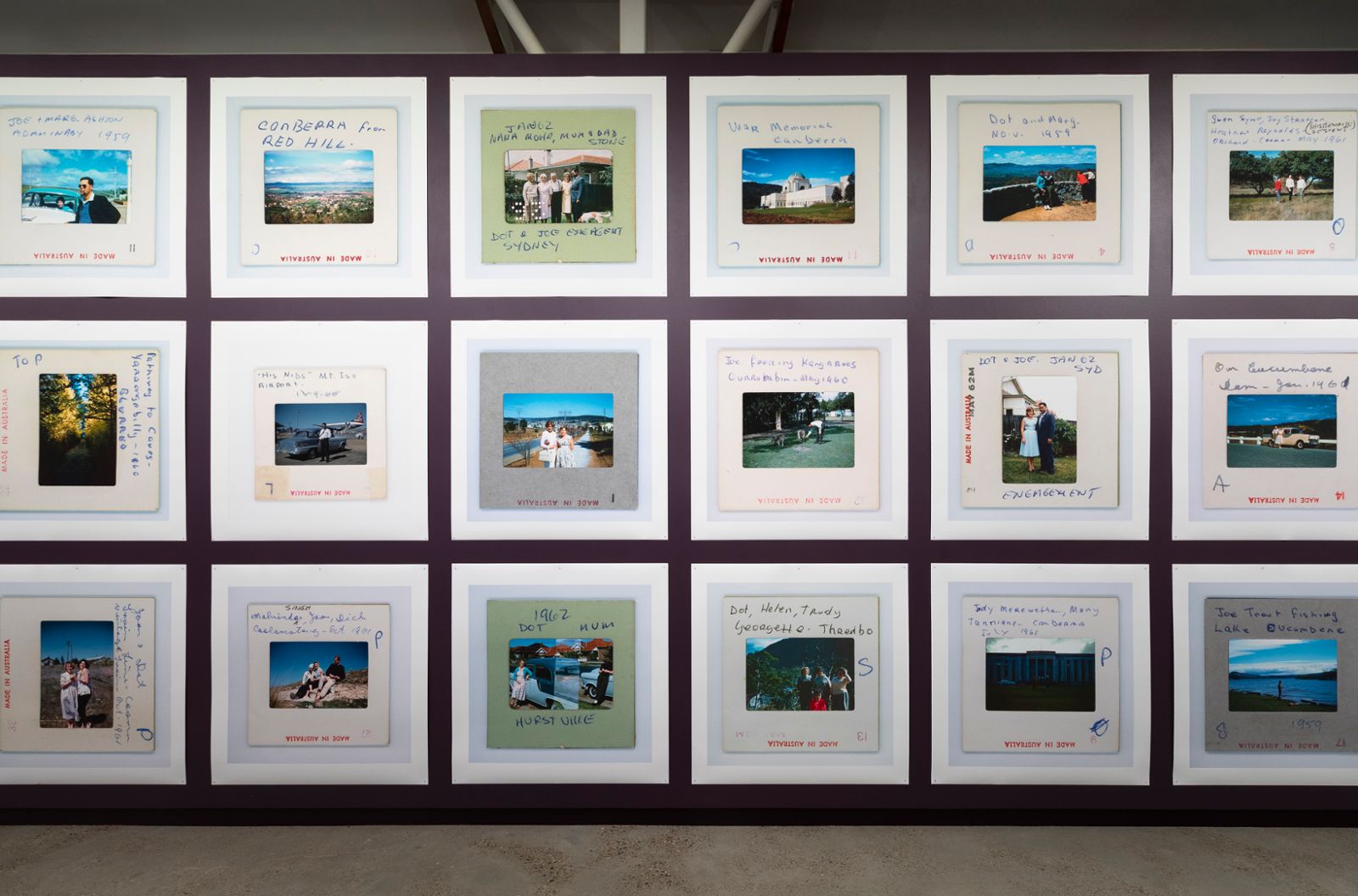 When Croft hears what she has described elsewhere as ‘calls from history’ she gratefully and ecstatically acknowledges them, bringing them into a contemporary temporal dimension. Encountering a postcard of the Anglican cathedral in Goulburn in one of her mother’s photo-albums, her handwritten notes on the reverse, moves her to tears. Despite having looked at the album countless times, Croft couldn’t ‘see’ the postcard until she was ready to–then, in one of those longed-for moments, the past opens up and the ‘invisible ancestral chain’ is activated to include Croft herself. A variant of this temporal rupture can be seen in the video footage of a blue tongue lizard on the cathedral floor; Croft describes the reptilian creature as a ‘guardian’, a messenger who waits to greet her.